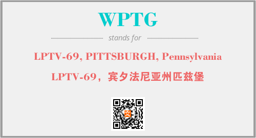 上述内容是“LPTV-69, PITTSBURGH, Pennsylvania”作为“WPTG”的缩写,解释为“LPTV-69,宾夕法尼亚州匹兹堡”时的信息,以及英文缩略词WPTG所代表的英文单词,其对应的中文拼音、详细解释以及在英文中的流行度和相关分类、应用领域及应用示例等。