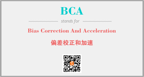 上述内容是“Bias Correction And Acceleration”作为“BCA”的缩写,解释为“偏差校正和加速”时的信息,以及英文缩略词BCA所代表的英文单词,其对应的中文拼音、详细解释以及在英文中的流行度和相关分类、应用领域及应用示例等。