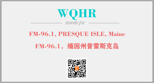 上述内容是“FM-96.1, PRESQUE ISLE, Maine”作为“WQHR”的缩写,解释为“FM-96.1,缅因州普雷斯克岛”时的信息,以及英文缩略词WQHR所代表的英文单词,其对应的中文拼音、详细解释以及在英文中的流行度和相关分类、应用领域及应用示例等。