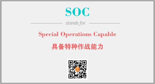 英文缩略词“SOC”经常作为“Special Operations Capable”的英文缩写来使用,中文表示:“具备特种作战能力”。本文将详细介绍英文缩写词SOC所代表英文单词,其对应的中文拼音、详细解释以及在英语中的流行度。此外,还有关于缩略词SOC的分类、应用领域及相关应用示例等。