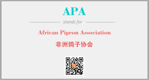 以上为African Pigeon Association英文缩略词APA的中文解释,以及该英文缩写在英语的流行度、分类和应用领域方面的信息。