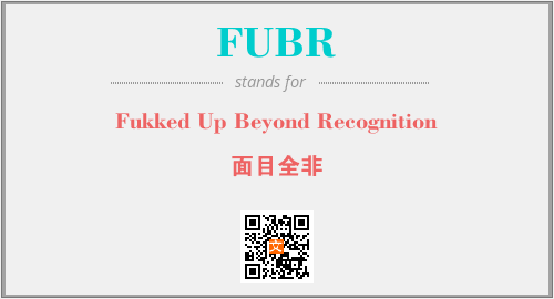 上述内容是“Fukked Up Beyond Recognition”作为“FUBR”的缩写,解释为“面目全非”时的信息,以及英文缩略词FUBR所代表的英文单词,其对应的中文拼音、详细解释以及在英文中的流行度和相关分类、应用领域及应用示例等。