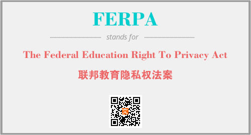 英文缩略词“FERPA”经常作为“The Federal Education Right To Privacy Act”的英文缩写来使用,中文表示:“联邦教育隐私权法案”。本文将详细介绍英文缩写词FERPA所代表英文单词,其对应的中文拼音、详细解释以及在英语中的流行度。此外,还有关于缩略词FERPA的分类、应用领域及相关应用示例等。