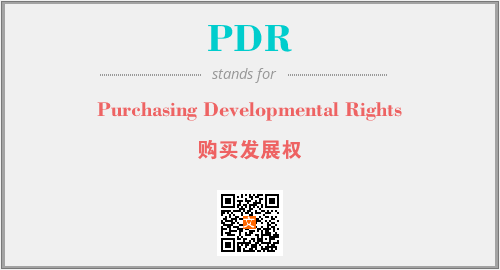 上述内容是“Purchasing Developmental Rights”作为“PDR”的缩写,解释为“购买发展权”时的信息,以及英文缩略词PDR所代表的英文单词,其对应的中文拼音、详细解释以及在英文中的流行度和相关分类、应用领域及应用示例等。