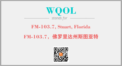 上述内容是“FM-103.7, Stuart, Florida”作为“WQOL”的缩写,解释为“FM-103.7,佛罗里达州斯图亚特”时的信息,以及英文缩略词WQOL所代表的英文单词,其对应的中文拼音、详细解释以及在英文中的流行度和相关分类、应用领域及应用示例等。