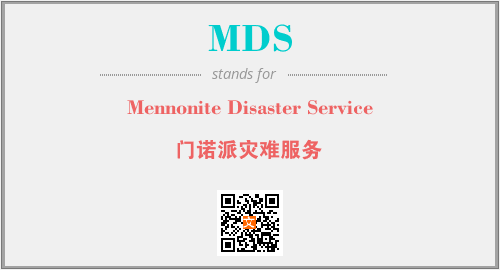 英文缩略词“MDS”经常作为“Mennonite Disaster Service”的英文缩写来使用,中文表示:“门诺派灾难服务”。本文将详细介绍英文缩写词MDS所代表英文单词,其对应的中文拼音、详细解释以及在英语中的流行度。此外,还有关于缩略词MDS的分类、应用领域及相关应用示例等。