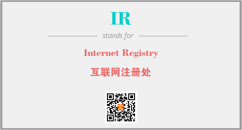 上述内容是“Internet Registry”作为“IR”的缩写,解释为“互联网注册处”时的信息,以及英文缩略词IR所代表的英文单词,其对应的中文拼音、详细解释以及在英文中的流行度和相关分类、应用领域及应用示例等。
