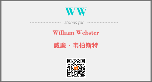 上述内容是“William Webster”作为“WW”的缩写,解释为“威廉·韦伯斯特”时的信息,以及英文缩略词WW所代表的英文单词,其对应的中文拼音、详细解释以及在英文中的流行度和相关分类、应用领域及应用示例等。