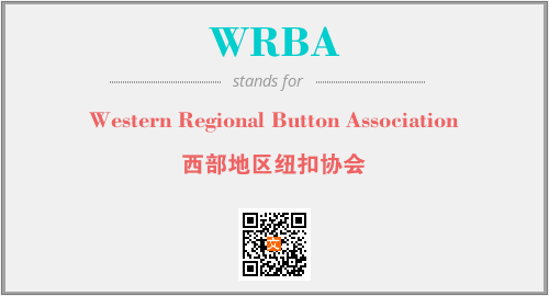 英文缩略词“WRBA”经常作为“Western Regional Button Association”的英文缩写来使用,中文表示:“西部地区纽扣协会”。本文将详细介绍英文缩写词WRBA所代表英文单词,其对应的中文拼音、详细解释以及在英语中的流行度。此外,还有关于缩略词WRBA的分类、应用领域及相关应用示例等。