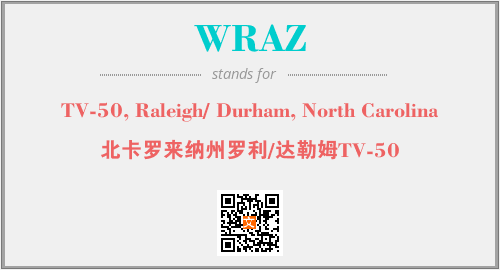 上述内容是“TV-50, Raleigh/ Durham, North Carolina”作为“WRAZ”的缩写,解释为“北卡罗来纳州罗利/达勒姆TV-50”时的信息,以及英文缩略词WRAZ所代表的英文单词,其对应的中文拼音、详细解释以及在英文中的流行度和相关分类、应用领域及应用示例等。