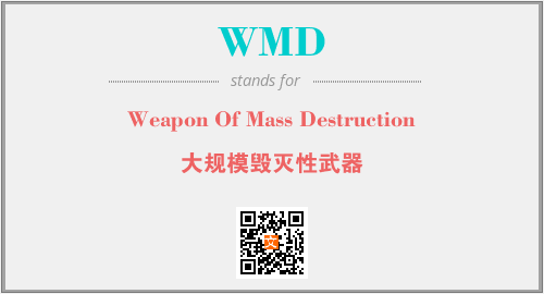 以上为Weapon Of Mass Destruction英文缩略词WMD的中文解释,以及该英文缩写在英语的流行度、分类和应用领域方面的信息。