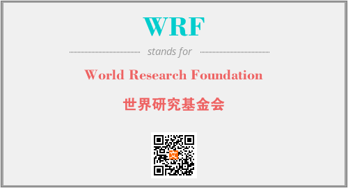 上述内容是“World Research Foundation”作为“WRF”的缩写,解释为“世界研究基金会”时的信息,以及英文缩略词WRF所代表的英文单词,其对应的中文拼音、详细解释以及在英文中的流行度和相关分类、应用领域及应用示例等。