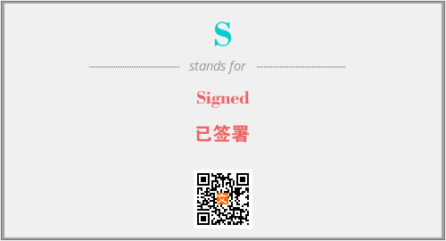 上述内容是“Signed”作为“S”的缩写,解释为“已签署”时的信息,以及英文缩略词S所代表的英文单词,其对应的中文拼音、详细解释以及在英文中的流行度和相关分类、应用领域及应用示例等。