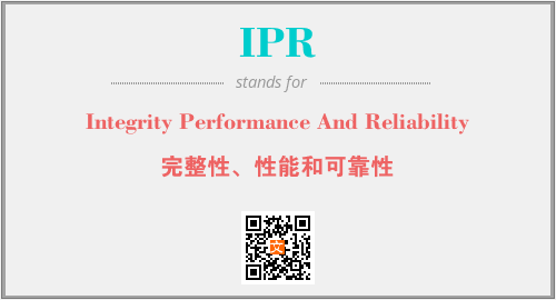 上述内容是“Integrity Performance And Reliability”作为“IPR”的缩写,解释为“完整性、性能和可靠性”时的信息,以及英文缩略词IPR所代表的英文单词,其对应的中文拼音、详细解释以及在英文中的流行度和相关分类、应用领域及应用示例等。