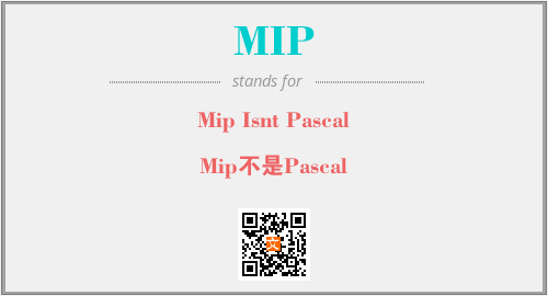 英文缩略词“MIP”经常作为“Mip Isnt Pascal”的英文缩写来使用,中文表示:“Mip不是Pascal”。本文将详细介绍英文缩写词MIP所代表英文单词,其对应的中文拼音、详细解释以及在英语中的流行度。此外,还有关于缩略词MIP的分类、应用领域及相关应用示例等。