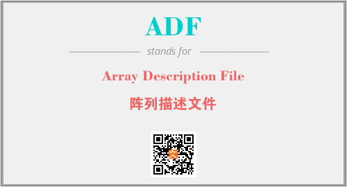 英文缩略词“ADF”经常作为“Array Description File”的英文缩写来使用,中文表示:“阵列描述文件”。本文将详细介绍英文缩写词ADF所代表英文单词,其对应的中文拼音、详细解释以及在英语中的流行度。此外,还有关于缩略词ADF的分类、应用领域及相关应用示例等。