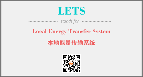 上述内容是“Local Energy Transfer System”作为“LETS”的缩写,解释为“本地能量传输系统”时的信息,以及英文缩略词LETS所代表的英文单词,其对应的中文拼音、详细解释以及在英文中的流行度和相关分类、应用领域及应用示例等。