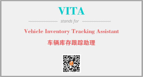 上述内容是“Vehicle Inventory Tracking Assistant”作为“VITA”的缩写,解释为“车辆库存跟踪助理”时的信息,以及英文缩略词VITA所代表的英文单词,其对应的中文拼音、详细解释以及在英文中的流行度和相关分类、应用领域及应用示例等。