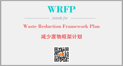 上述内容是“Waste Reduction Framework Plan”作为“WRFP”的缩写,解释为“减少废物框架计划”时的信息,以及英文缩略词WRFP所代表的英文单词,其对应的中文拼音、详细解释以及在英文中的流行度和相关分类、应用领域及应用示例等。