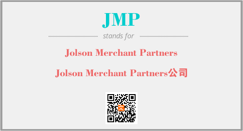 英文缩略词“JMP”经常作为“Jolson Merchant Partners”的英文缩写来使用,中文表示:“Jolson Merchant Partners公司”。本文将详细介绍英文缩写词JMP所代表英文单词,其对应的中文拼音、详细解释以及在英语中的流行度。此外,还有关于缩略词JMP的分类、应用领域及相关应用示例等。