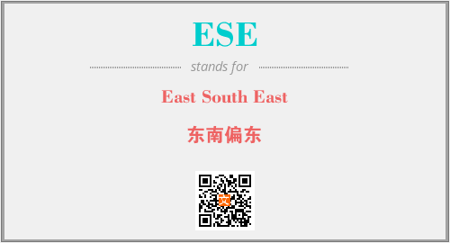 上述内容是“East South East”作为“ESE”的缩写,解释为“东南偏东”时的信息,以及英文缩略词ESE所代表的英文单词,其对应的中文拼音、详细解释以及在英文中的流行度和相关分类、应用领域及应用示例等。