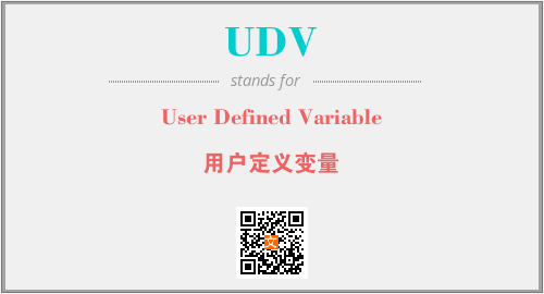 英文缩略词“UDV”经常作为“User Defined Variable”的英文缩写来使用,中文表示:“用户定义变量”。本文将详细介绍英文缩写词UDV所代表英文单词,其对应的中文拼音、详细解释以及在英语中的流行度。此外,还有关于缩略词UDV的分类、应用领域及相关应用示例等。