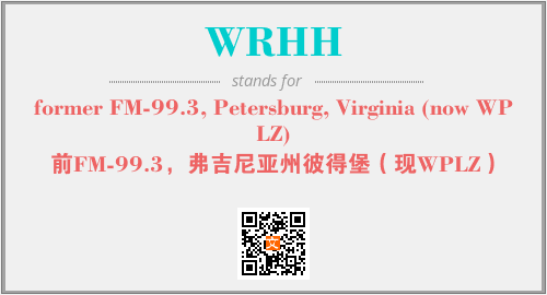 上述内容是“former FM-99.3, Petersburg, Virginia (now WPLZ)”作为“WRHH”的缩写,解释为“前FM-99.3,弗吉尼亚州彼得堡(现WPLZ)”时的信息,以及英文缩略词WRHH所代表的英文单词,其对应的中文拼音、详细解释以及在英文中的流行度和相关分类、应用领域及应用示例等。
