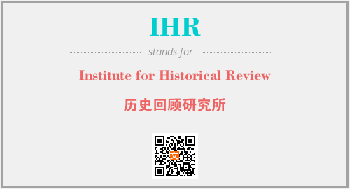 上述内容是“Institute for Historical Review”作为“IHR”的缩写,解释为“历史回顾研究所”时的信息,以及英文缩略词IHR所代表的英文单词,其对应的中文拼音、详细解释以及在英文中的流行度和相关分类、应用领域及应用示例等。