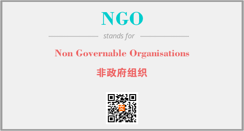 上述内容是“Non Governable Organisations”作为“NGO”的缩写,解释为“非政府组织”时的信息,以及英文缩略词NGO所代表的英文单词,其对应的中文拼音、详细解释以及在英文中的流行度和相关分类、应用领域及应用示例等。