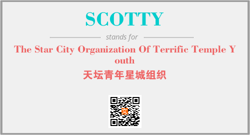 上述内容是“The Star City Organization Of Terrific Temple Youth”作为“SCOTTY”的缩写,解释为“天坛青年星城组织”时的信息,以及英文缩略词SCOTTY所代表的英文单词,其对应的中文拼音、详细解释以及在英文中的流行度和相关分类、应用领域及应用示例等。