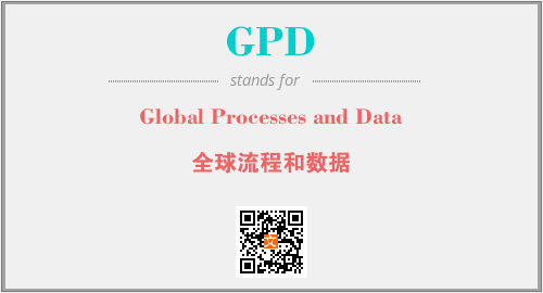 英文缩略词“GPD”经常作为“Global Processes and Data”的英文缩写来使用,中文表示:“全球流程和数据”。本文将详细介绍英文缩写词GPD所代表英文单词,其对应的中文拼音、详细解释以及在英语中的流行度。此外,还有关于缩略词GPD的分类、应用领域及相关应用示例等。