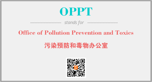 上述内容是“Office of Pollution Prevention and Toxics”作为“OPPT”的缩写,解释为“污染预防和毒物办公室”时的信息,以及英文缩略词OPPT所代表的英文单词,其对应的中文拼音、详细解释以及在英文中的流行度和相关分类、应用领域及应用示例等。