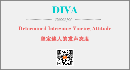 以上为Determined Intriguing Voicing Attitude英文缩略词DIVA的中文解释,以及该英文缩写在英语的流行度、分类和应用领域方面的信息。