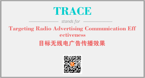 上述内容是“Targeting Radio Advertising Communication Effectiveness”作为“TRACE”的缩写,解释为“目标无线电广告传播效果”时的信息,以及英文缩略词TRACE所代表的英文单词,其对应的中文拼音、详细解释以及在英文中的流行度和相关分类、应用领域及应用示例等。