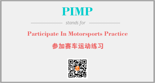 以上为Participate In Motorsports Practice英文缩略词PIMP的中文解释,以及该英文缩写在英语的流行度、分类和应用领域方面的信息。