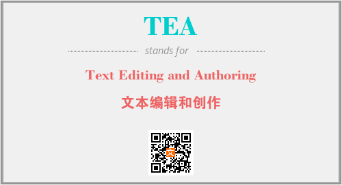 以上为Text Editing and Authoring英文缩略词TEA的中文解释,以及该英文缩写在英语的流行度、分类和应用领域方面的信息。