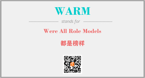 上述内容是“Were All Role Models”作为“WARM”的缩写,解释为“都是榜样”时的信息,以及英文缩略词WARM所代表的英文单词,其对应的中文拼音、详细解释以及在英文中的流行度和相关分类、应用领域及应用示例等。