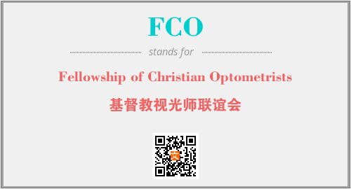 上述内容是“Fellowship of Christian Optometrists”作为“FCO”的缩写,解释为“基督教视光师联谊会”时的信息,以及英文缩略词FCO所代表的英文单词,其对应的中文拼音、详细解释以及在英文中的流行度和相关分类、应用领域及应用示例等。