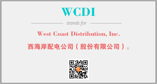 上述内容是“West Coast Distribution, Inc.”作为“WCDI”的缩写,解释为“西海岸配电公司(股份有限公司)。”时的信息,以及英文缩略词WCDI所代表的英文单词,其对应的中文拼音、详细解释以及在英文中的流行度和相关分类、应用领域及应用示例等。