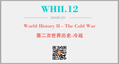 英文缩略词“WHII.12”经常作为“World History II - The Cold War”的英文缩写来使用,中文表示:“第二次世界历史-冷战”。本文将详细介绍英文缩写词WHII.12所代表英文单词,其对应的中文拼音、详细解释以及在英语中的流行度。此外,还有关于缩略词WHII.12的分类、应用领域及相关应用示例等。