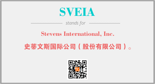 上述内容是“Stevens International, Inc.”作为“SVEIA”的缩写,解释为“史蒂文斯国际公司(股份有限公司)。”时的信息,以及英文缩略词SVEIA所代表的英文单词,其对应的中文拼音、详细解释以及在英文中的流行度和相关分类、应用领域及应用示例等。