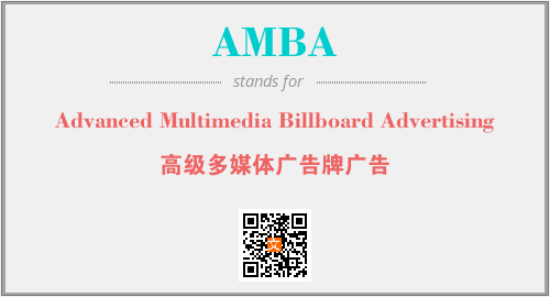 上述内容是“Advanced Multimedia Billboard Advertising”作为“AMBA”的缩写,解释为“高级多媒体广告牌广告”时的信息,以及英文缩略词AMBA所代表的英文单词,其对应的中文拼音、详细解释以及在英文中的流行度和相关分类、应用领域及应用示例等。