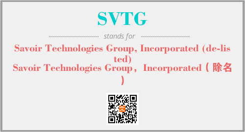 上述内容是“Savoir Technologies Group, Incorporated (de-listed)”作为“SVTG”的缩写,解释为“Savoir Technologies Group,Incorporated(除名)”时的信息,以及英文缩略词SVTG所代表的英文单词,其对应的中文拼音、详细解释以及在英文中的流行度和相关分类、应用领域及应用示例等。
