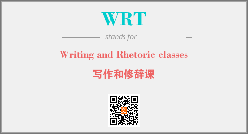 上述内容是“Writing and Rhetoric classes”作为“WRT”的缩写,解释为“写作和修辞课”时的信息,以及英文缩略词WRT所代表的英文单词,其对应的中文拼音、详细解释以及在英文中的流行度和相关分类、应用领域及应用示例等。