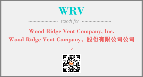 上述内容是“Wood Ridge Vent Company, Inc.”作为“WRV”的缩写,解释为“Wood Ridge Vent Company,股份有限公司公司。”时的信息,以及英文缩略词WRV所代表的英文单词,其对应的中文拼音、详细解释以及在英文中的流行度和相关分类、应用领域及应用示例等。