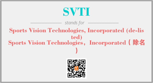 上述内容是“Sports Vision Technologies, Incorporated (de-listed)”作为“SVTI”的缩写,解释为“Sports Vision Technologies,Incorporated(除名)”时的信息,以及英文缩略词SVTI所代表的英文单词,其对应的中文拼音、详细解释以及在英文中的流行度和相关分类、应用领域及应用示例等。