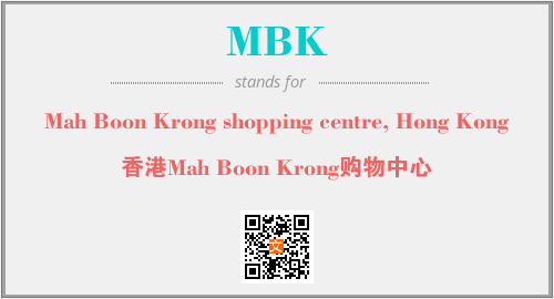 英文缩略词“MBK”经常作为“Mah Boon Krong shopping centre, Hong Kong”的英文缩写来使用,中文表示:“香港Mah Boon Krong购物中心”。本文将详细介绍英文缩写词MBK所代表英文单词,其对应的中文拼音、详细解释以及在英语中的流行度。此外,还有关于缩略词MBK的分类、应用领域及相关应用示例等。