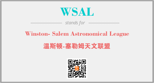 上述内容是“Winston- Salem Astronomical League”作为“WSAL”的缩写,解释为“温斯顿-塞勒姆天文联盟”时的信息,以及英文缩略词WSAL所代表的英文单词,其对应的中文拼音、详细解释以及在英文中的流行度和相关分类、应用领域及应用示例等。