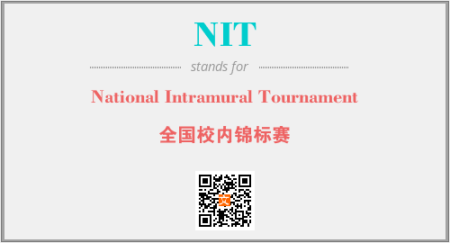 英文缩略词“NIT”经常作为“National Intramural Tournament”的英文缩写来使用,中文表示:“全国校内锦标赛”。本文将详细介绍英文缩写词NIT所代表英文单词,其对应的中文拼音、详细解释以及在英语中的流行度。此外,还有关于缩略词NIT的分类、应用领域及相关应用示例等。
