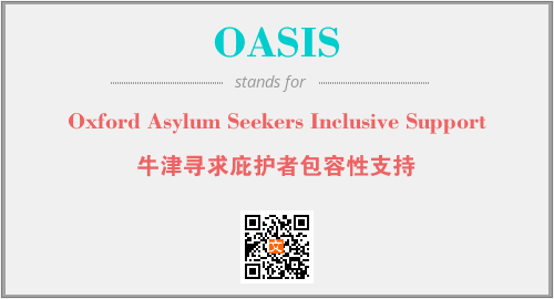 上述内容是“Oxford Asylum Seekers Inclusive Support”作为“OASIS”的缩写,解释为“牛津寻求庇护者包容性支持”时的信息,以及英文缩略词OASIS所代表的英文单词,其对应的中文拼音、详细解释以及在英文中的流行度和相关分类、应用领域及应用示例等。